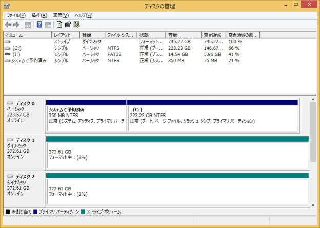 そこで仕方なくWindowsの機能を使ったソフトウェアRAIDを試した。