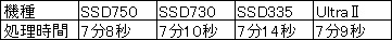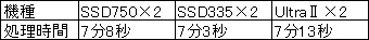 これは意外な、とても意外な結果となった。何度測ってもSSD335×2>SSD750×2>UltraⅡ×2となった。なぜだろう...?