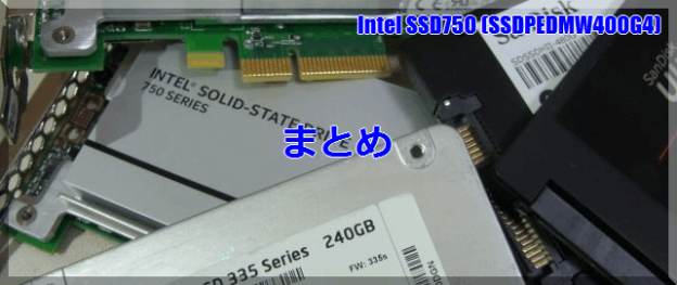 今回、外部インターフェースがPCI Express x4形状で内部インターフェースがNVM Expressを採るにインテルの新世代SSD、SSD750を検証した。BIOSの更新やドライバの更新など導入のハードルはあるが、その苦労をする甲斐がある圧倒的なスコアを得ることができる。