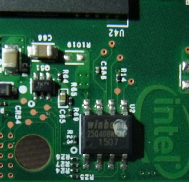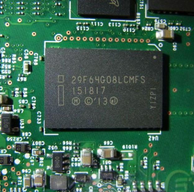 まず一番数が多い(裏面18個)のが、インテル製のNANDフラッシュメモリチップPF29F64G08LCMFS。