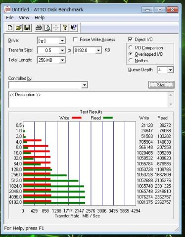 上記のように、SATA接続の高速なSSDと比べて、シーケンシャルライト性能は約2倍程度ですが、