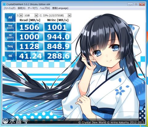 4枚のRAID0並みの速度は、初めてHDDからSDDへ変えた時ほどの激烈な速度差までは感じられませんでしたが、起動速度の1秒、2秒の差が大きく影響するゲームや、一回の作業が30秒程度しか変わらなかったとしても積み重ねることによって大きく効率が変わる作業などの作業効率向上は
