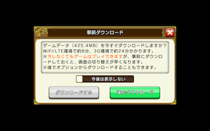 このうち425Mの方はキャッシュのようなもので今落とさなくても遊べるようですが、落としておくと画面切り替えがスイスイというのでできれば落としておきましょう。