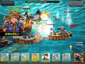 実際の画面ではSD化されたキャラが戦場をちょこまかと動いて可愛らしい感じ。海賊船もぐりぐり動くので結構マシンパワーは使ってそうです。古い端末だとかくかくに見えるかもしれませんね。