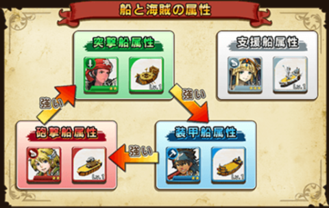 そして特徴的なのはそれぞれ海賊ごとに兵種と色相性が設定されていること。