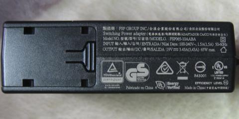 出力:19V 3.43A 65W maxとなっています。