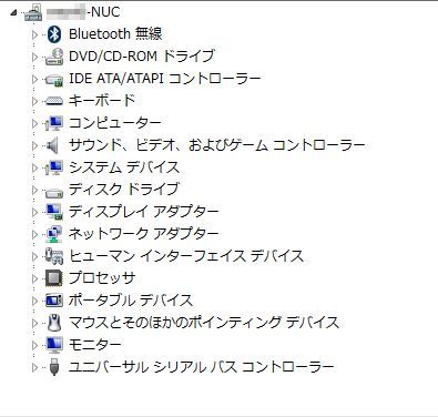 NUC5i7RYHの製品「サイト」からドライバーをダウンロードして一通りインストールするとすべて認識、「!」が無事消えました。