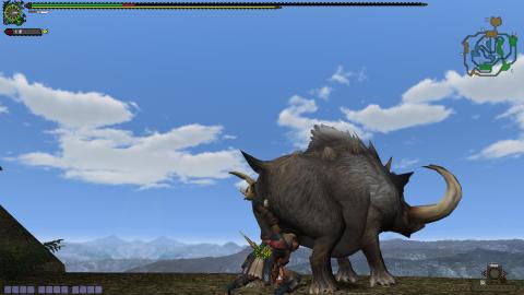 そして、そのまま初狩りへ・・・って、ここまでくるのに苦労しました。キーボードとマウスでの操作がこのシステムに合ってないのか、まっすぐ進むのにも苦労しました。(私だけなのかもしれませんが・・・)ここの方にクエストを申し込みます。