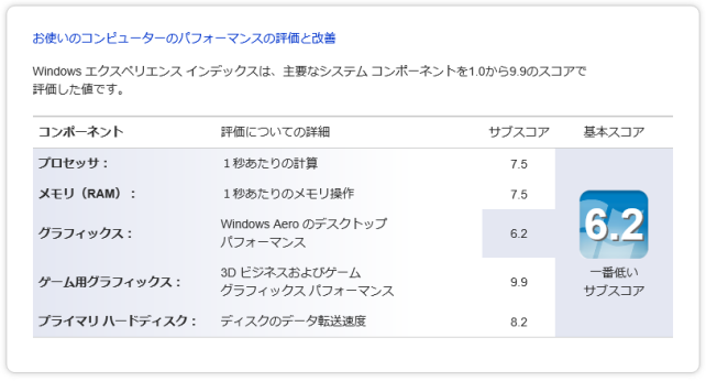 2015年12月23日:Windowsエクスペリエンスインデックス追加