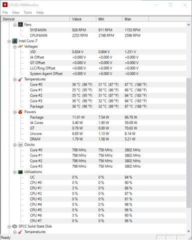 アイドル36度、高負荷時87度をマーク。真冬なのにヤバい。