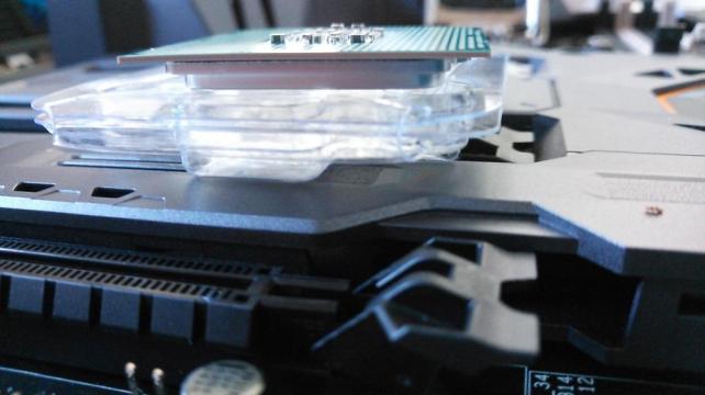超重量級CPUクーラーV8GTSに取り付けて、何度かグラフィックカードの交換などケースを寝かせたり起こしたりを、当CPUがきてから、やっていて昨日ついに乗せ換えのためCPUを取り出してみました。