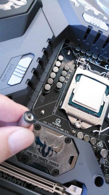 最後にCPUクーラーを載せて少しグリグリしてから、4か所のネジを説明書の順番通りに