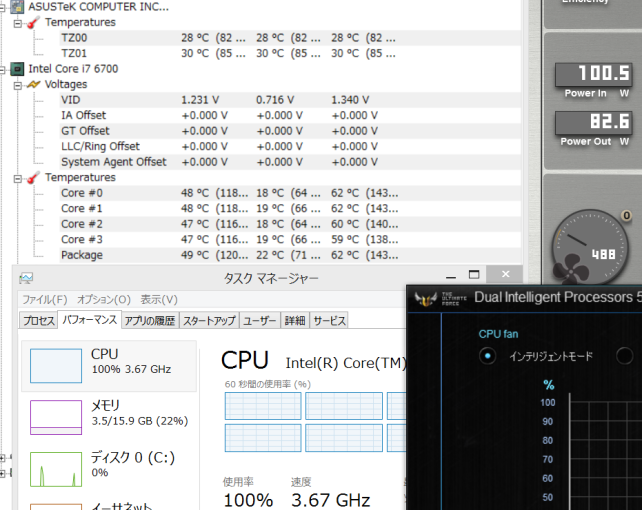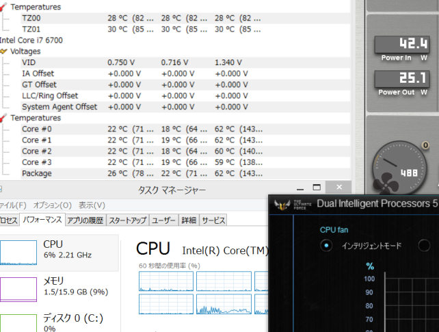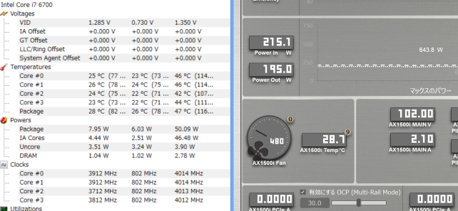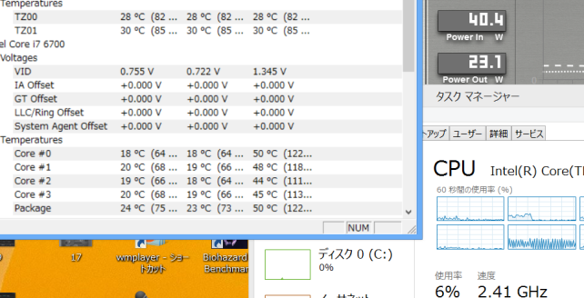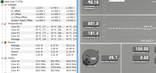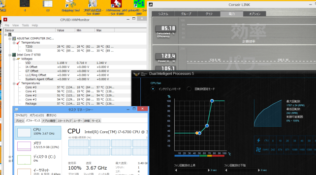 温度計測はHWモニター(室温18~20度、ファン設定は画像参照、