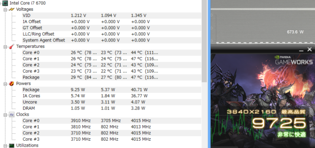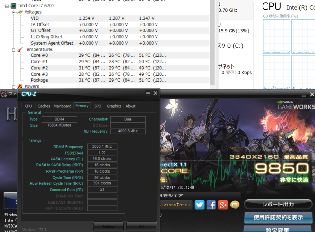 KなしのCPUでもi7-4790と4790Kで去年に比較してみましたが、ほとんどのケースでゲーム的には、4.2GHz位までオーバークロックできれば、後はグラフィックスカード次第ですが、そこまでかわりませんでしたので、i7-6700でも十分楽しめそうですね^^