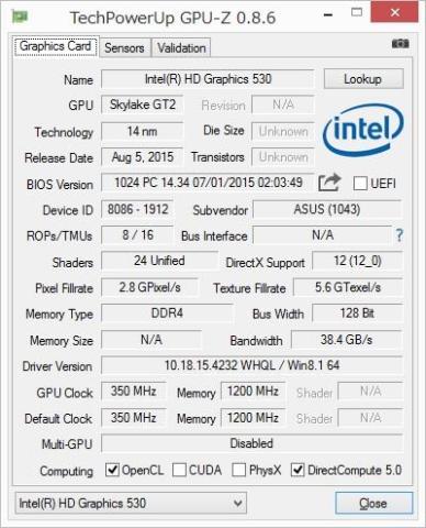 プロセッサー・グラフィックス Intel(R) HD Graphics 530