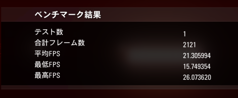 平均FPSが21.3となっていることから、やはり内臓GPUでは不足気味なのか・・・