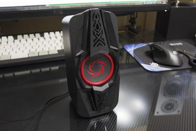 3wayのサテライトスピーカーにサブウーファーという2.1ch構成のスピーカーに、77Wの出力を誇るアンプ兼コントロールBOXで構成される、ゲーミングスピーカー。