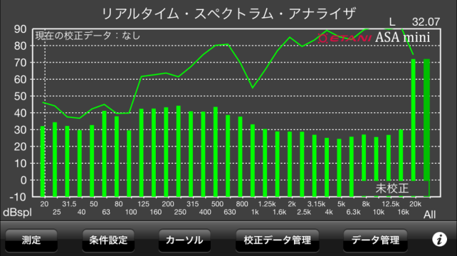Etani RTAというiPhone向けのスペクトルアナライザーアプリを使用して、周波数特性を計測してみた。