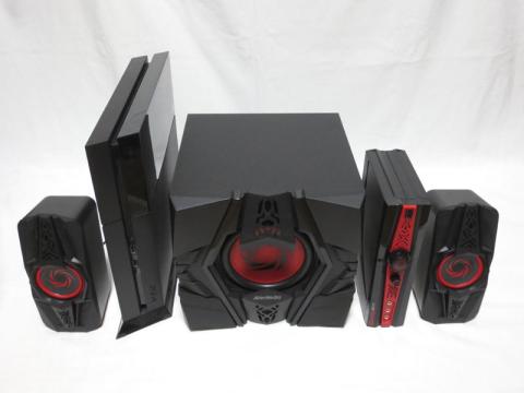 出力は”ステレオ 6.5Wx2、サブウーハー27W”で合計40W出力。上位モデルと比べると機能は削られていますがゲームに最適化した音声出力の他に、操作性の良いコントロールボックスのアナログボリュームで低音域を調整可能といった特徴を備えています。
