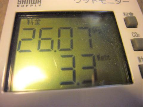 背面の電源スイッチONの無音状態で3.3Wでした。