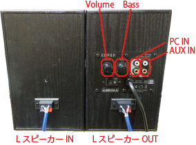 特に、右スピーカーは「出力」端子ですから、つないだら壊れます。