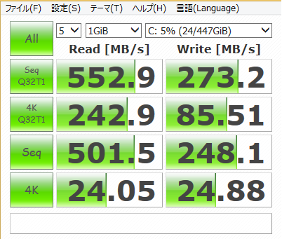 コメント:上記速度を確認すると、HDDとの起動の速さが際立ってわかります。