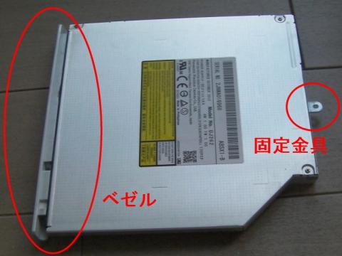 固定金具とベゼルを光学ドライブからキャディに付け替える