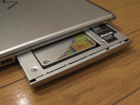 あとはキャディをノートPCに挿し込んでネジで固定すれば終わりです。キャディの形状に少し問題があったみたいで、どこか引っかかっていて挿し込めませんでしたが、いろいろなところを押し込んでみたら、引っかかってたところが解消されたのか、挿し込めるようになりました。