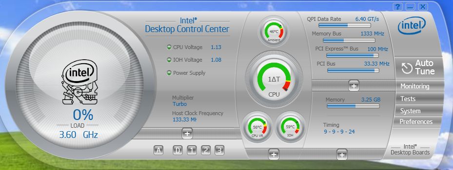 このマザーボードにはIntel Desktop Control Center (IDCC)というユーティリティが付いています。このIDCCのおかげで我々初心者は安心してオーバークロック遊びができます。