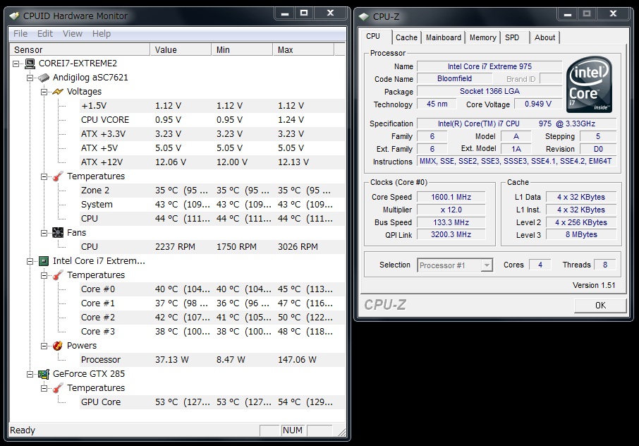 Core2DuoE6600のオーバークロックからステップアップ。E6600は定格2.4GHzですが空冷で3.3GHzにて使用しています。今回のi7-975は定格は同じ3.3GHzです...