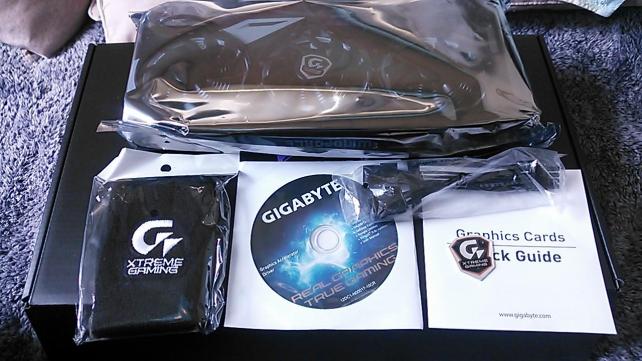 付属品はリストバンドと、付属ソフトインストールディスク、GIGABYTEステッカー、クイックガイド、補助電源変換コネクターです。