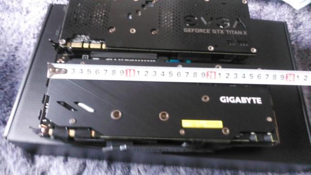 基盤自体はTITAN Xベースぽいのですが、クーラーが巨大です。まずは、ACXと並べてみました。