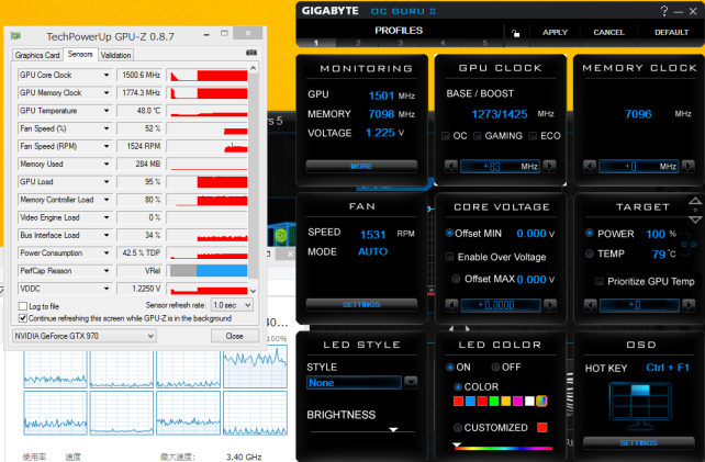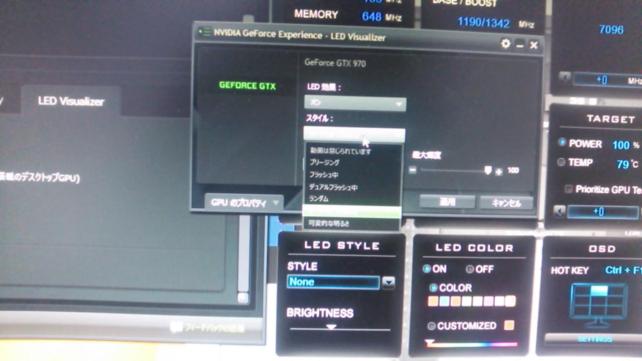 後は、裏技的ですが、OC GURUⅡを起動したままNVIDIA GeForce Experience-LED Visualizer