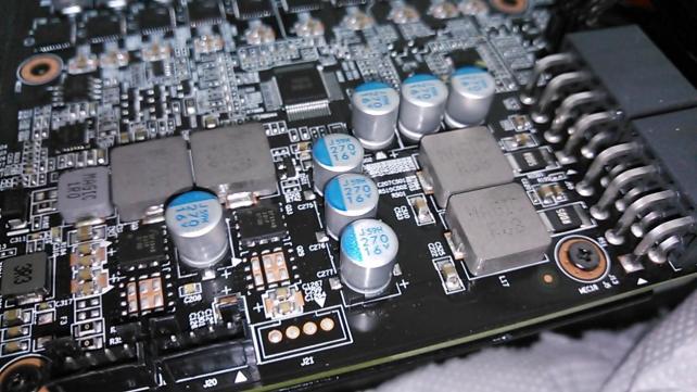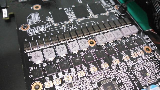 こちらは分解編で写真にだしましたが10+2フェーズ 電源設計にTITAN X 採用のチョークコイルやコンデンサーを惜しげもなく採用(お金かけ過ぎです)