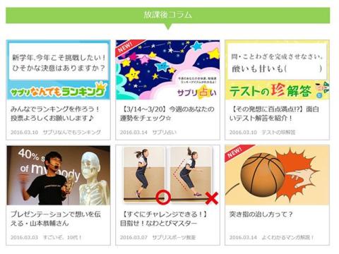 「放課後コラム」は占いやテストの珍解答等といった子供の興味の持ちそうなコンテンツがサラッと読めるようになっています。