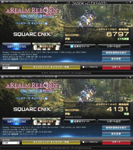 ・参考としてi7-2600K+GTX560Tiのパソコンでの数値も出す
