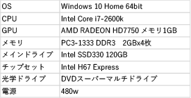 (現在も販売されているPCであるため、詳細なパーツ名称の掲載は自粛いたしました。)