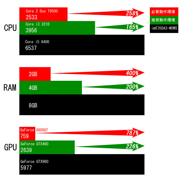 World of Warshipsの必要動作環境と推奨動作環境は以下の通り。