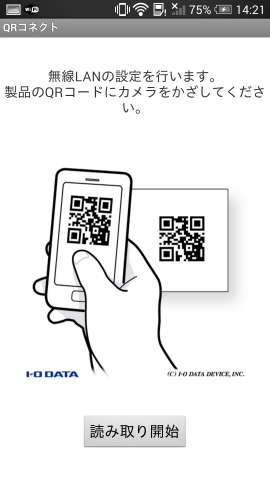 付属の無線LAN設定情報シートのQRコードを読み取り