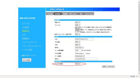 「5Ghz設定」にだけ赤丸でマークしたように、