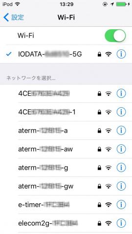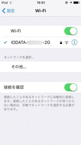 しかし、iPod touch第六世代とiPad miniでは、特にパスワードを手入力したり、QRコードをカメラで読んで設定するなどの一手間が必要なく、簡単に接続出来ました。