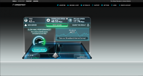 speedtest.net のサイトへ既存のELECOM WRC-F1750ACGH と 新規のアイ・オー・データWN-AX1167GR で無線接続してスピードテストを行ってみました