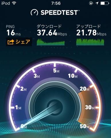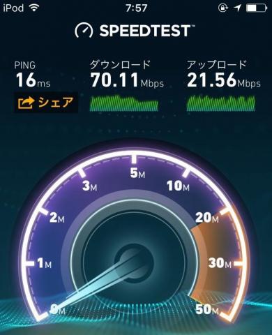 iPod touch第六世代のSPEEDTESTアプリでも速度計測してみます