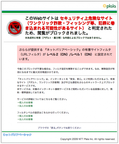 でも、もっと他の悪質なワンクリック・フィッシング詐欺、ウィルス配布サイトのブロックは行われているのかもしれません