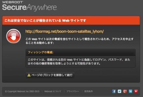 追記: Mac版safariを使っていて初めて Webroot SecureAnywhere のアラートが出ました