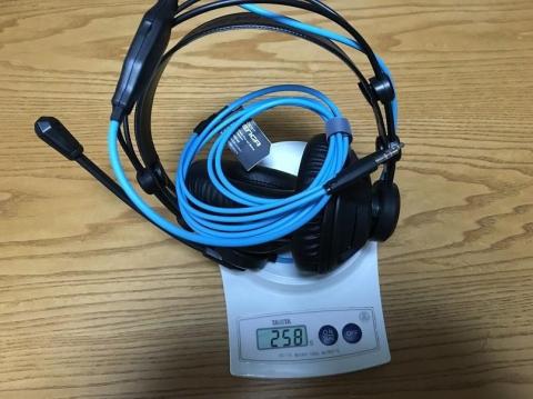 メーカーサイトにはヘッドセットのみの重量は210gとでてますが、実際にはコードもぶら下がるのでコードを含めた重量を測っておきます。