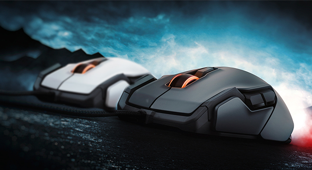 ROCCAT KOVAはボタン機能の増加と高精度なマウス操作を実現した有線式ゲーミングマウスです。直感的なボタンのレイアウトにより、ペースの速いゲームでも抜群のパフォーマンスを発揮します。ボディは左右両利き用に設計されており、高級スポーツカーを彷彿とさせる流線形のデザインになっています。また、RGBライトニングイルミネーションシステムにより、スクロールホイールやマウスの縁の色を自分好みにカスタマイズできます。