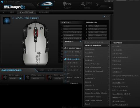 マウス単体でもSWARMで ROCCAT TALK/FX項目の EASY-SHIFT[+]ALL DEVICES LOOK/UNLOOKでトルグスイッチ化も出来るので