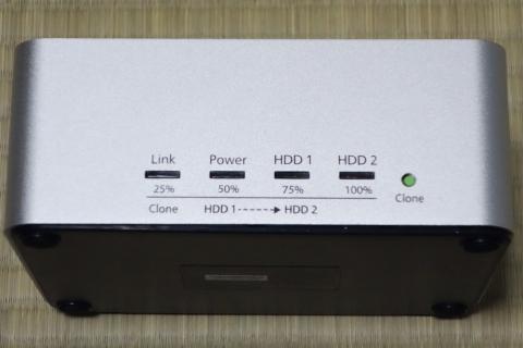 ※CLONEボタンを長押しすると、HDD1⇒HDD2にコピーされるので注意して下さい