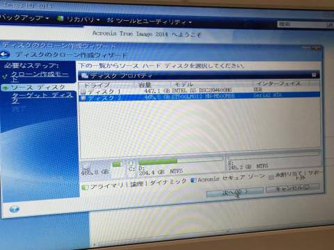 SSD換装前に、HDD内のデータをSSDへ移行します。
